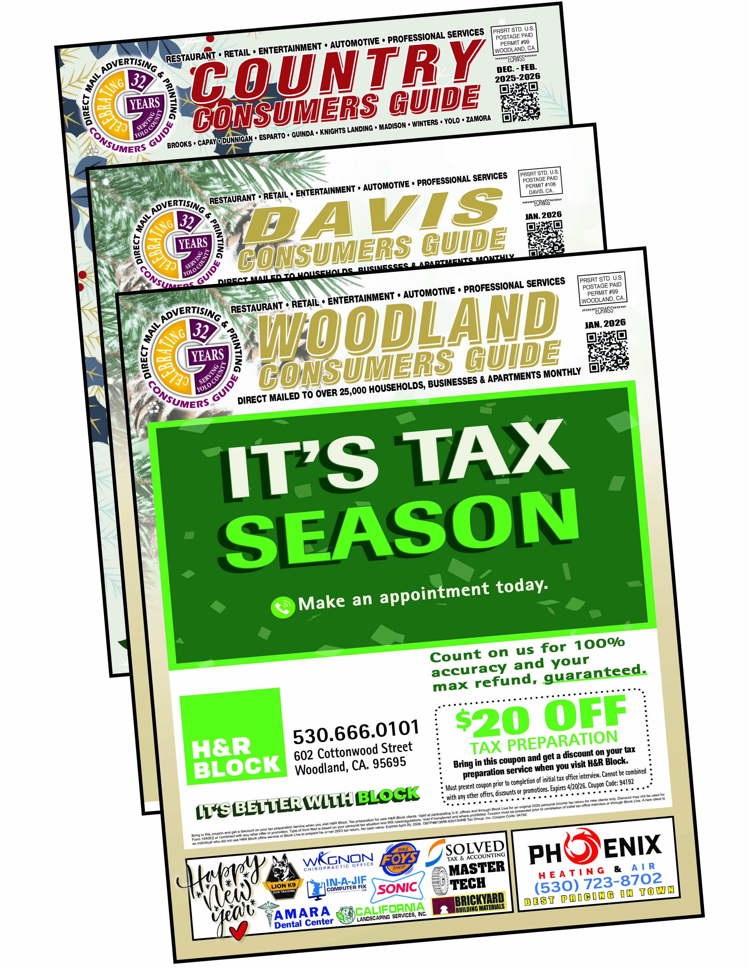 Consumers Guide reaches over 50,000 mailboxes monthly and over 60,000 mail boxes quarterly saturating Yolo County.